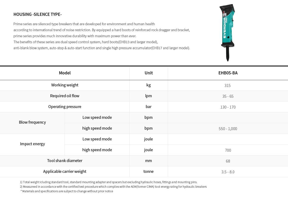 Everdigm's extensive range of Rock Breakers are designed to excel in the toughest construction & demolition job sites. With an innovative design and only using the highest quality parts, Everdigm Rock Breakers are built to maximise productivity whilst minimising maintenance and downtime.