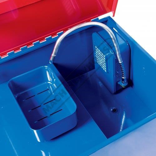 Heavy duty welded steel unit offers plenty of room for large size parts features a removable shelf a sealed recirculating motor and a flexible hose