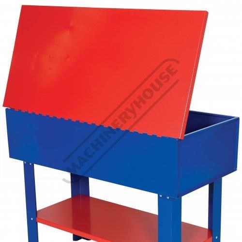 The hinged lid incorporates a fusible link that automatically shuts in the event of a flash fire